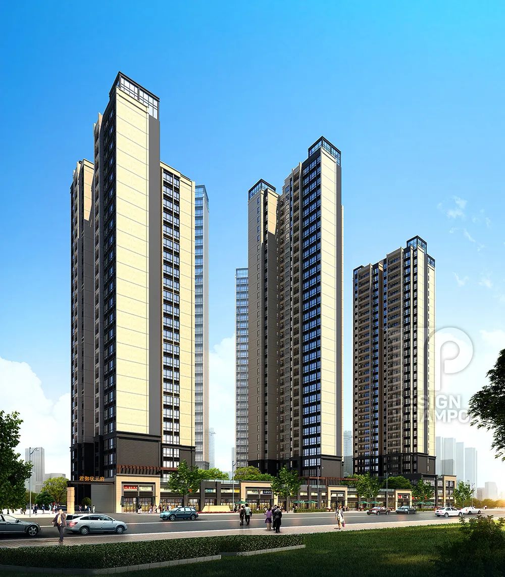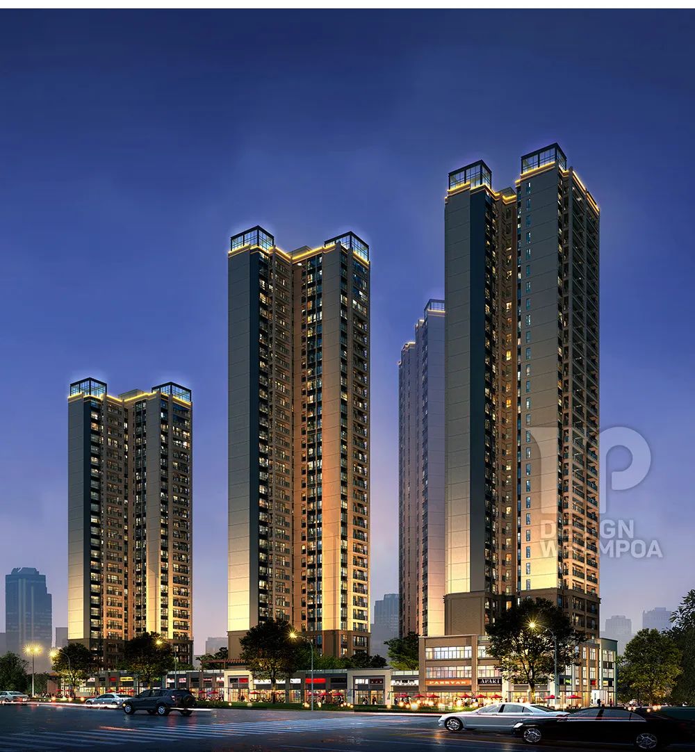 在整體造型上利用體量整體性與景觀滲透的策略,使用現(xiàn)代簡歐風(fēng)格從簡單到繁雜、從整體到局部,給人一絲不茍的印象。造型簡潔明快,彰顯著現(xiàn)代生活節(jié)奏、簡約和實用,但又富有時尚氣息。