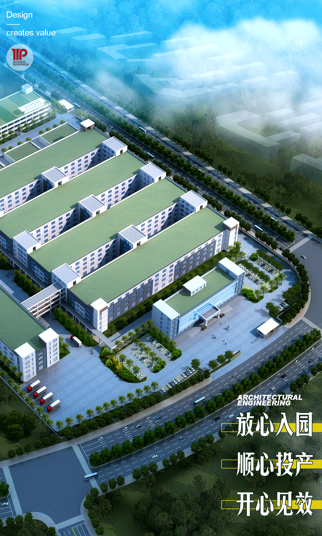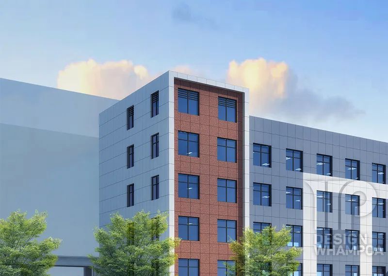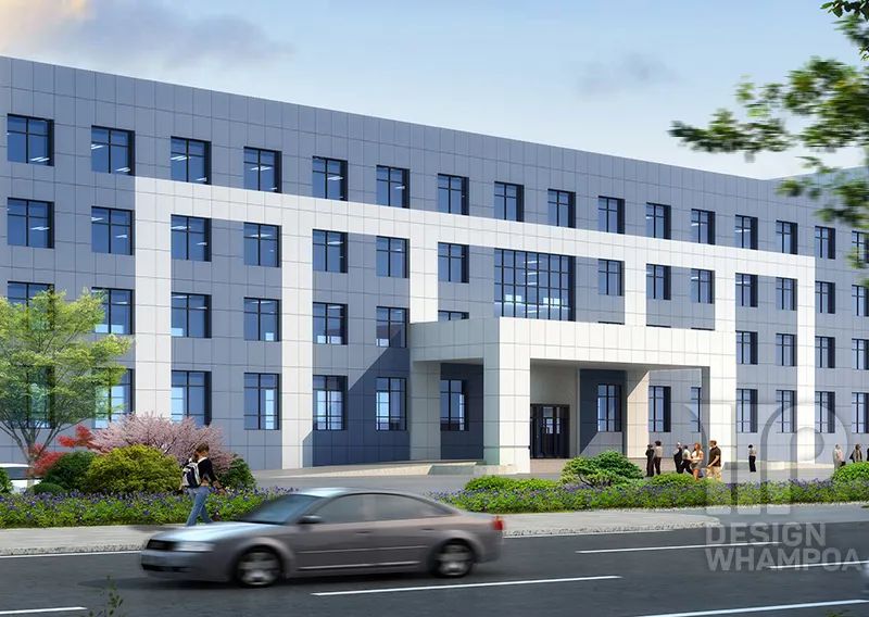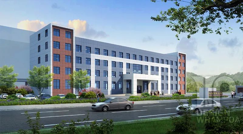 由于工業(yè)廠房是工廠的主要生產(chǎn)車間,左右著工廠建筑群的空間組合,在體型設(shè)計中考慮到全廠建筑構(gòu)圖的完整與統(tǒng)一,以及與周邊環(huán)境的協(xié)調(diào)。廠區(qū)建筑外墻主要以白色、淺藍(lán)色外墻磚為主,加以部分棕色外墻磚與玻璃幕墻點綴,建筑風(fēng)格為現(xiàn)代簡約風(fēng)格。
