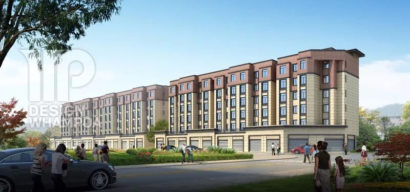 層層疊疊面磚與規(guī)整框架的組合無(wú)疑是最具代表性的現(xiàn)代城鎮(zhèn)建設(shè)風(fēng)格,立面材質(zhì)采用柔和色調(diào),主要分為下部分淺黃色仿石漆,頂層為咖啡色面磚,色彩間相互襯托呼應(yīng),也是對(duì)傳統(tǒng)建筑色彩元素的一種突破與創(chuàng)新。